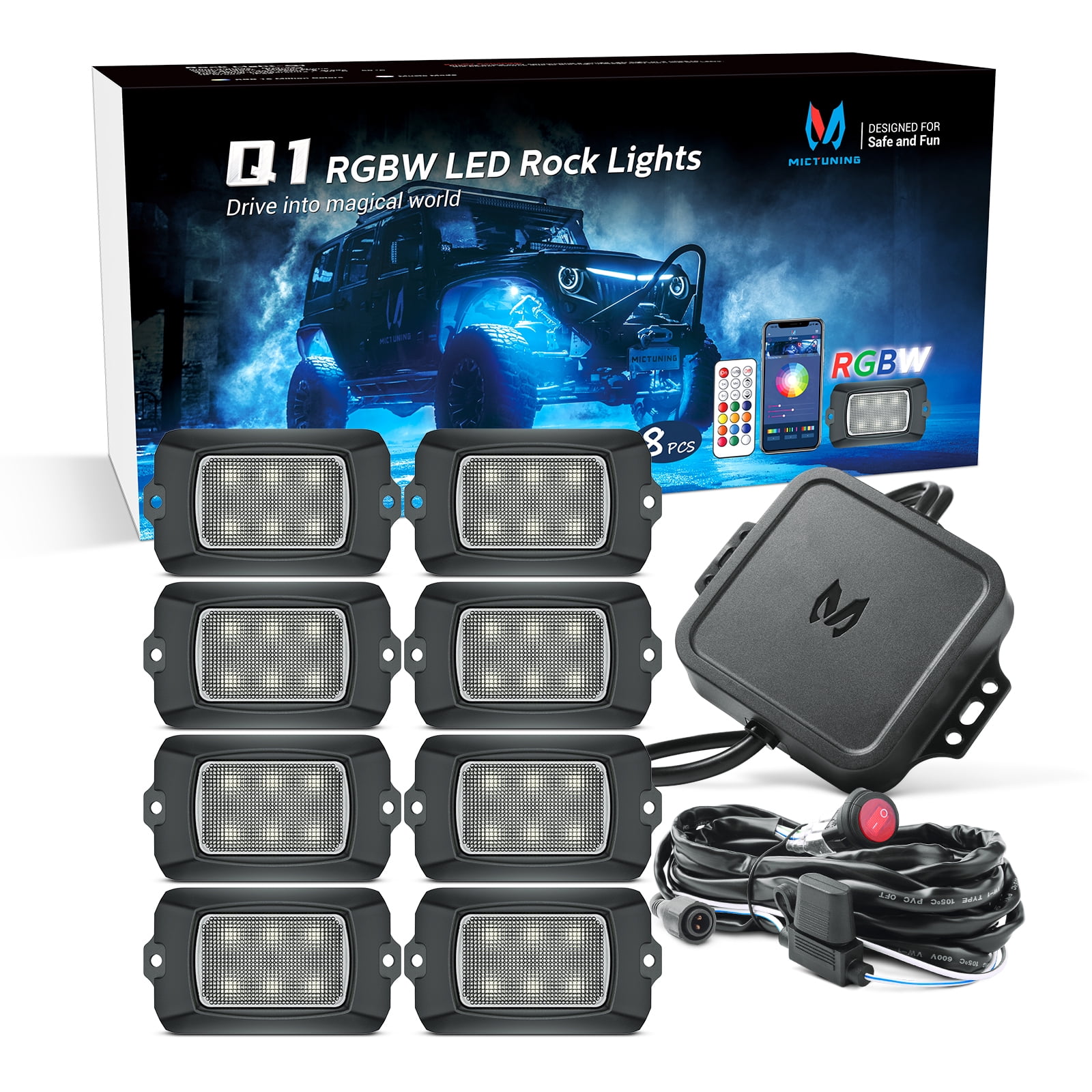 Mictuning Latest Q1 Rgbw Led Rock Lights 8 Pods Underglow Multicolor Neon Light With Wiring Switch Kit Bluetooth Controller Remote Control Music Mode Walmart Com